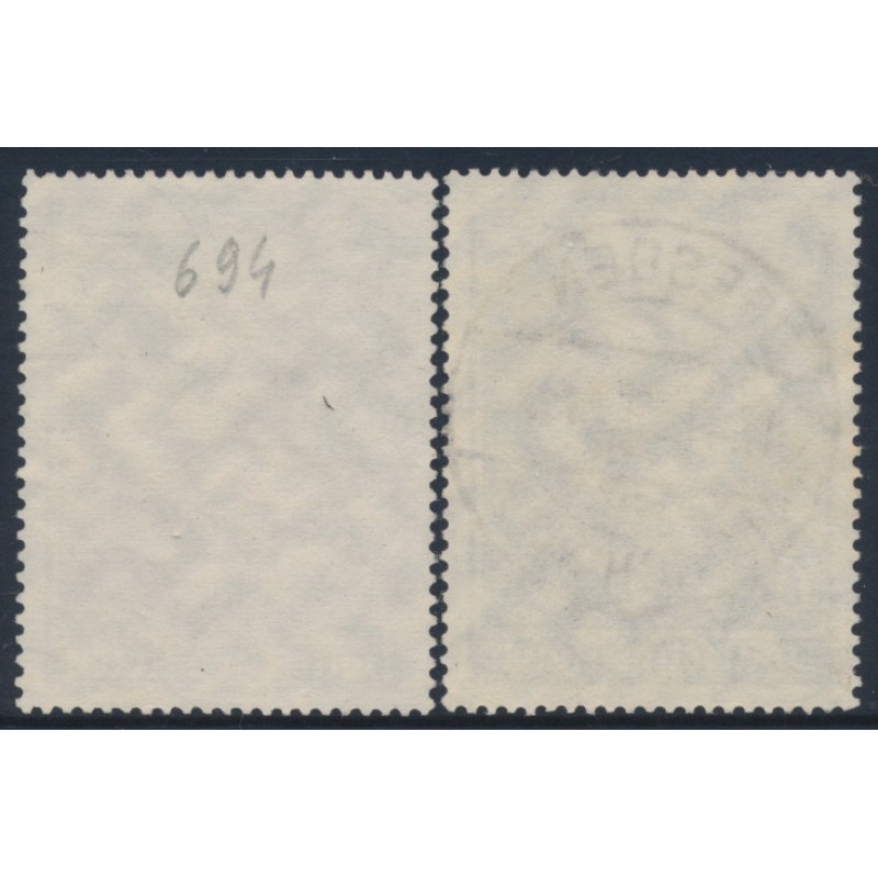 GERMANY / DEUTSCHES REICH / DEUTSCHLAND 1939 6+19pf black-brown Labour Day plus Reichspartei Day overprint, used – no thins, tears or bends. Michel Cat. # 694 + 701