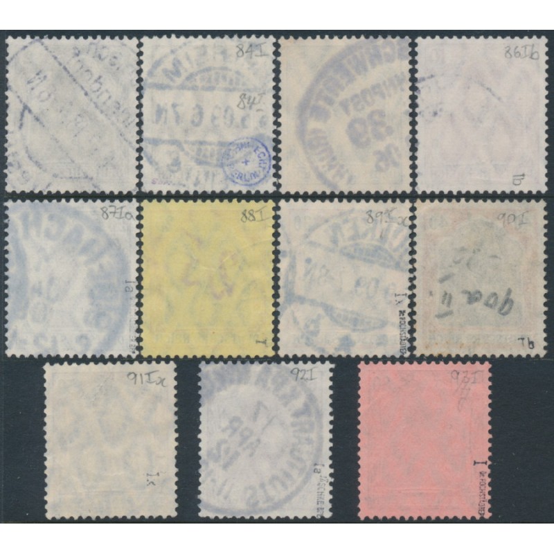 1905 2pf to 80pf Germania set of 11 (Friedensdruck / peace-time printing), used – no thins, tears or bends. All of the values except the 2pf & 5pf stamps have been expertised by the BPP.