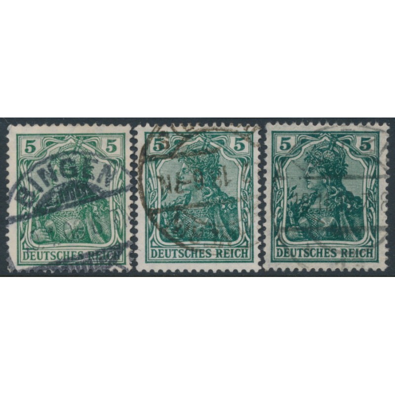 1915 5pf green, blue-green & deep opal-green Germania (Kriegsdruck / war-time printing), used – no thins, tears or bends. Each stamp has been expertised by the BPP.