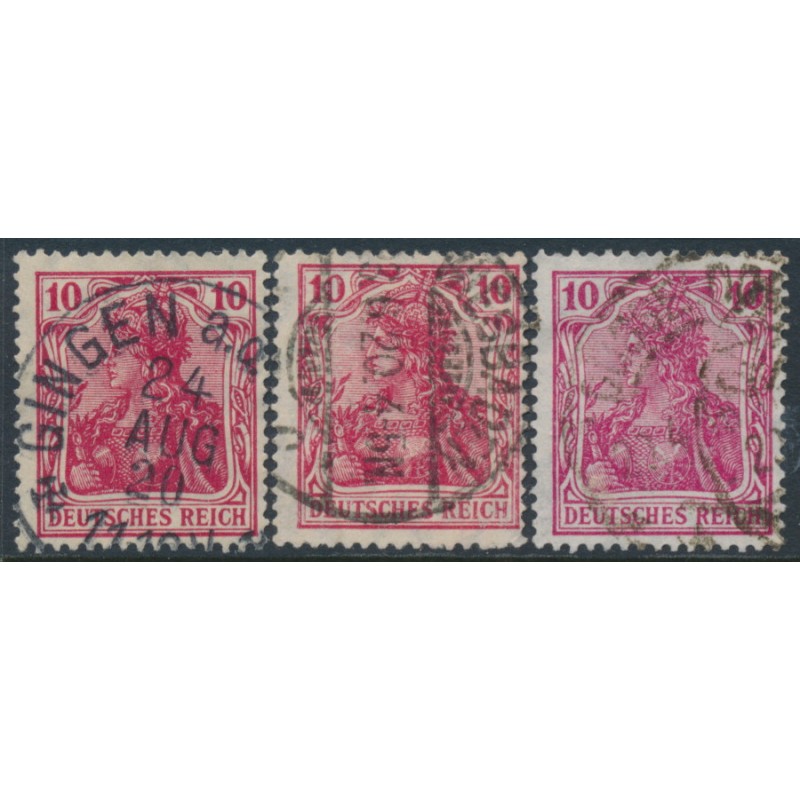 GERMANY - 1915 10pf red Germania, three listed shades, used – Michel # 86IIa+86IIc+86IId