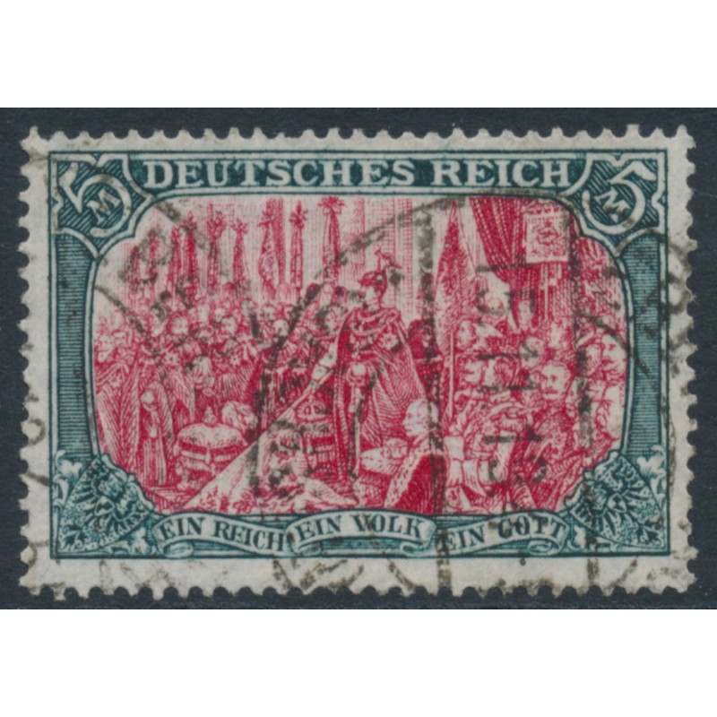 1916 5Mk black/carmine Commemoration of the Foundation of the Reich (Reichsgründungsgedenkfeier), diamonds watermark, (Friedensdruck / peace-time printing), inscribed DEUTSCHES POST, perforations measure 26:17 holes, used – no thins, tears or bends. Has been expertised by Jäschke-Lantelme BPP.