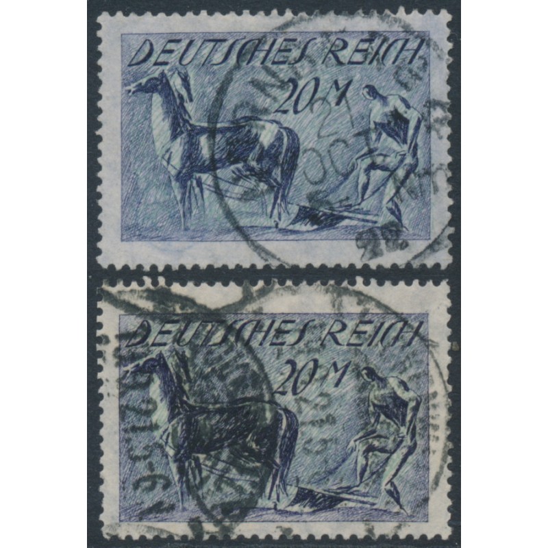 1921 20Mk violet-blue & deep violet-blue Horse & Plough, diamonds (Rauten = Wz 1) watermark, used – no thins, tears or bends. Each stamp has been expertised by the BPP / Infla-Berlin.