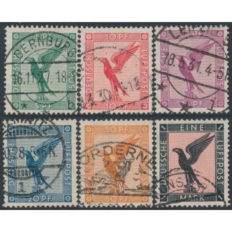 GERMANY / DEUTSCHES REICH 1926 5pf to 1Mk Eagles airmail short set of 6, used – no thins, tears or bends. Michel Cat. # 378-382
