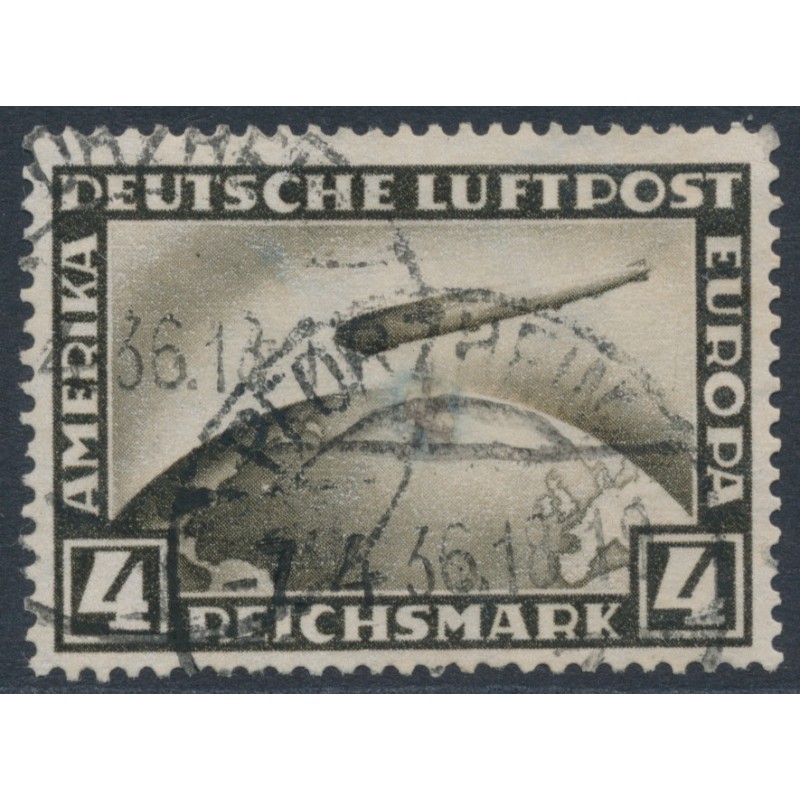 GERMANY / DEUTSCHES REICH 1928 4RM black-brown Graf Zeppelin, used – no thins, tears or bends. Michel Cat. # 424