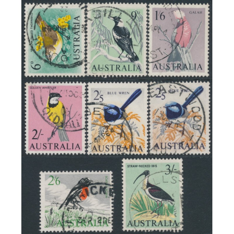 AUSTRALIA - 1964-1965 6d to 3/- Native Birds set of 8, used – SG # 363-369 + 367a