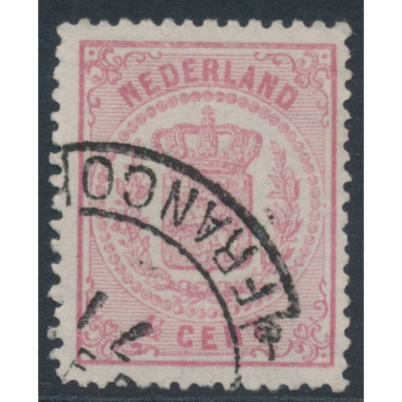 NETHERLANDS / NEDERLAND 1869 1½c rose Coat of Arms, perf. 13¼:13¼ (small holes, thick paper), used – no thins, tears or bends. NVPH Cat. # 16B Michel Cat. # 16B