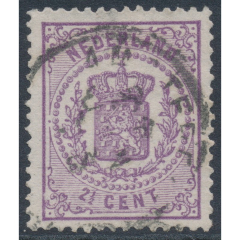 NETHERLANDS - 1870 2½c violet Coat of Arms, perf. 13¼:13¼ (large holes), used – NVPH # 18D