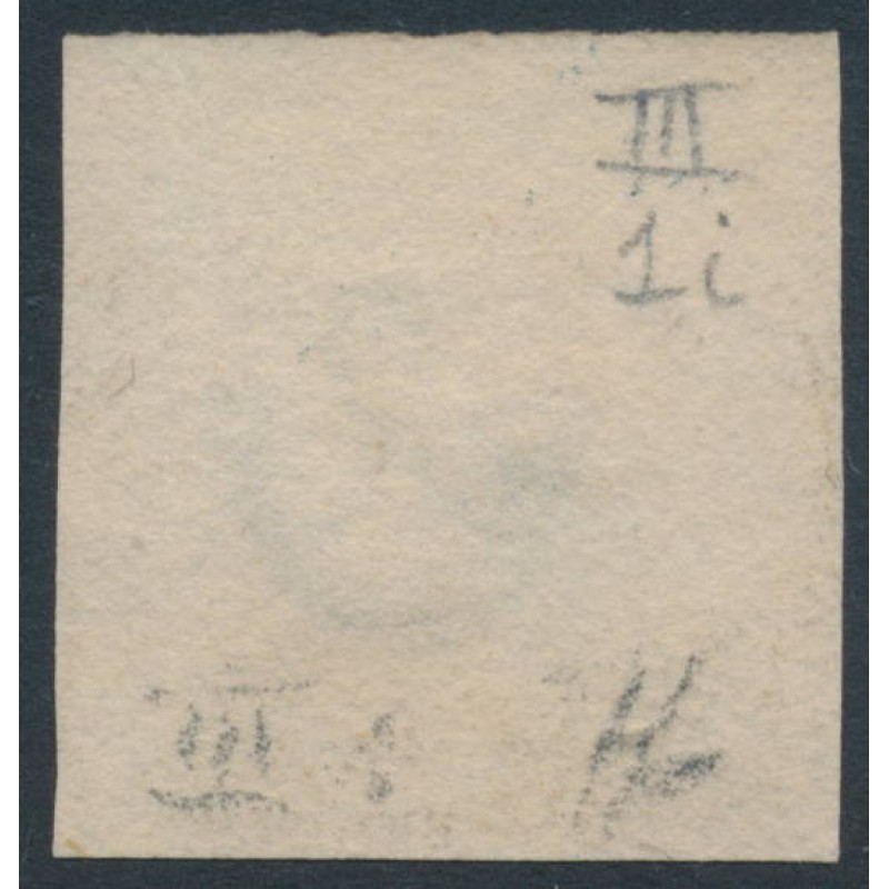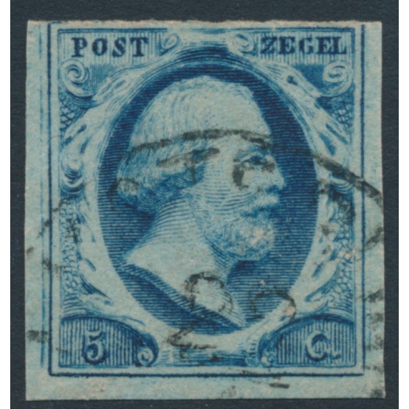 NETHERLANDS / NEDERLAND / HOLLAND 1852 5c deep blue King Willem III, plate III, used – no thins, tears or bends. NVPH Cat. # 1i Michel Cat. # 1a