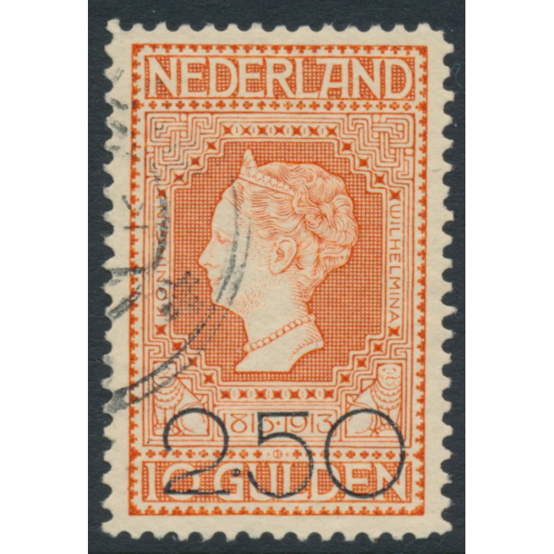 NETHERLANDS / NEDERLAND 1920 2.50G on 10G red-orange Queen Wilhelmina, used – no thins, tears or bends. NVPH Cat. # 105 Michel Cat. # 100