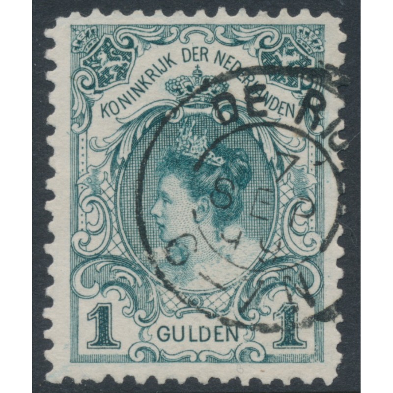 NETHERLANDS / NEDERLAND 1898 1G blue-green Queen Wilhelmina (type I), perf. 11½:11, used – no thins, tears or bends. NVPH Cat. # 49 Michel Cat. # 63IB