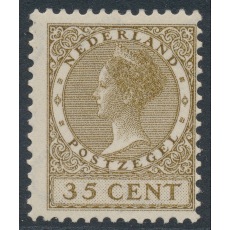 NETHERLANDS / NEDERLAND / HOLLAND 1926 35c brown-olive Queen Wilhelmina, rings watermark, mint hinged – no thins, tears or bends. NVPH Cat. # 195 Michel Cat. # 189A