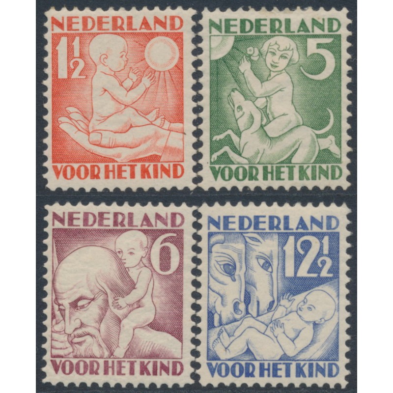 NETHERLANDS / NEDERLAND 1930 Voor het Kind set of 4, mint hinged – no thins, tears or bends. NVPH Cat. # 232-235 Michel Cat. # 236A-239A Scott Cat. # B44-B47