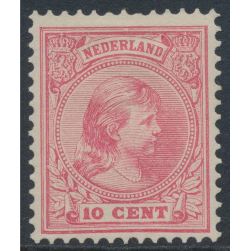 NETHERLANDS / NEDERLAND 1896 10c aniline rose Princess Wilhelmina, mint hinged – no thins, tears or bends. NVPH Cat. # 37 Michel Cat. # 37b