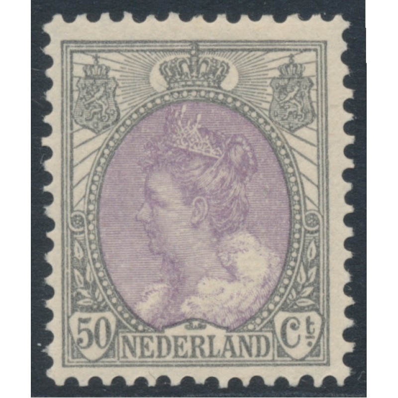NETHERLANDS / NEDERLAND 1914 50c grey/violet Queen Wilhelmina, perf. 12½:12½, mint hinged – no thins, tears or bends. NVPH Cat. # 75 Michel Cat. # 80A