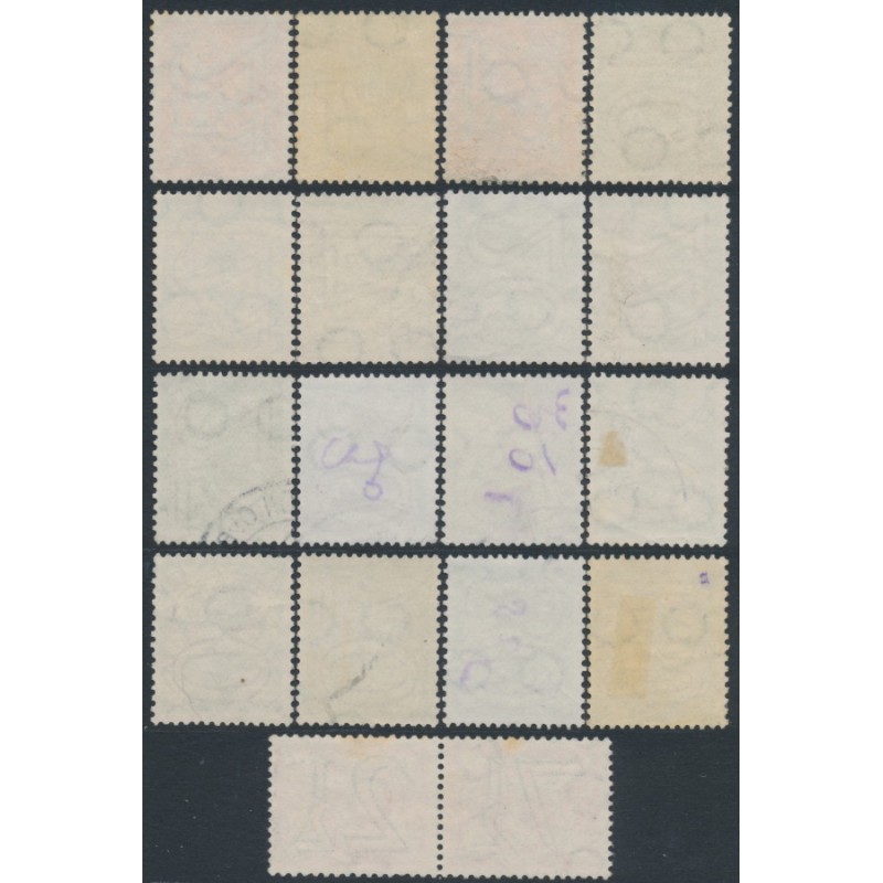 NETHERLANDS / NEDERLAND 1940 2½c to 100c Numeral overprints short set of 16 plus 7½c+2½c se-tenant pair, used – no thins, tears or bends. NVPH Cat. # 356-371 + 356b Michel Cat. # 357-372