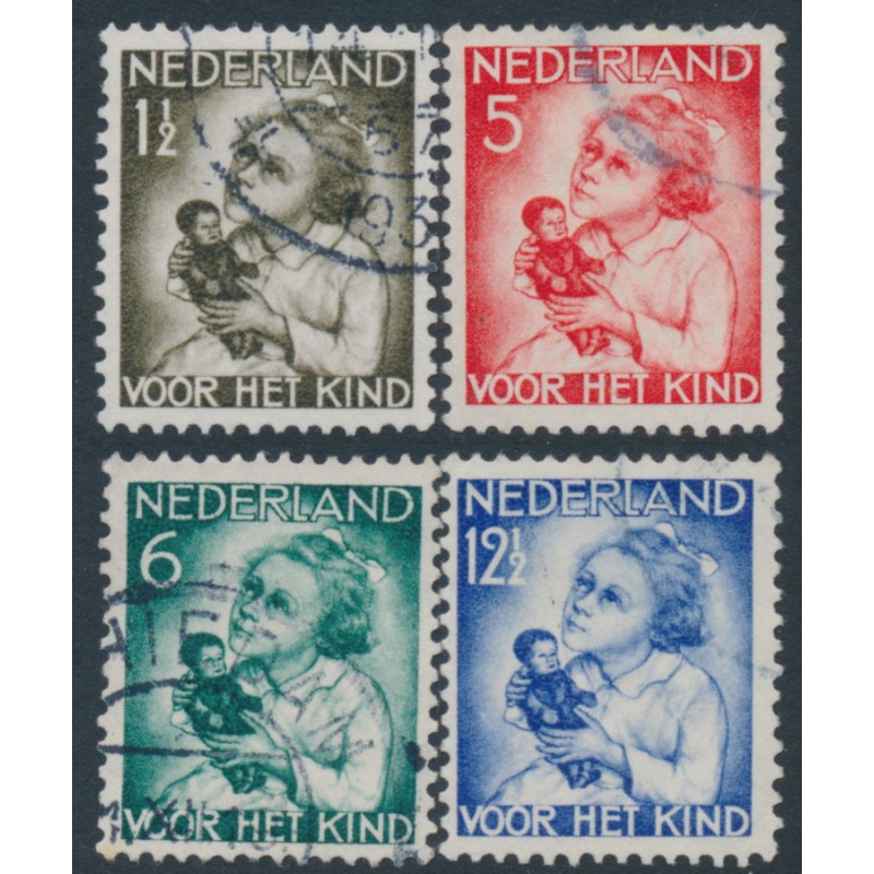 NETHERLANDS / NEDERLAND 1934 Voor het Kind charity set of 4, used – no thins, tears or bends. NVPH Cat. # 270-273 Michel Cat. # 277-280