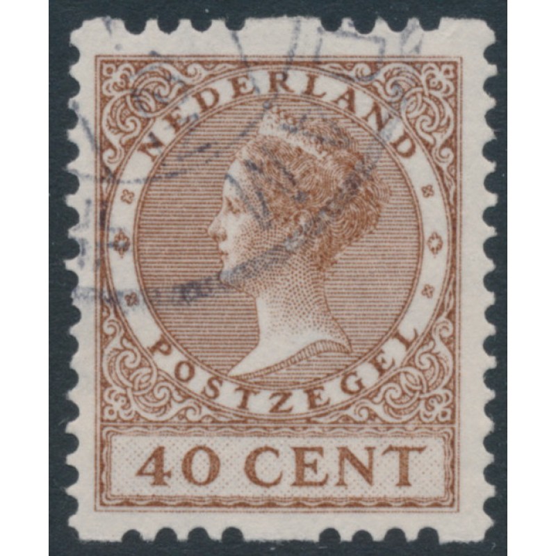 1925 40c brown Queen Wilhelmina, no watermark, coil perforations on two sides (syncopated perfs / roltanding), used – no thins, tears or bends.