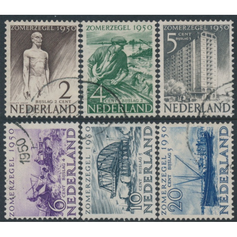 NETHERLANDS / NEDERLAND 1950 Summer Stamps set of 6, used – no thins, tears or bends. NVPH Cat. # 550-555 Michel Cat. # 552-557