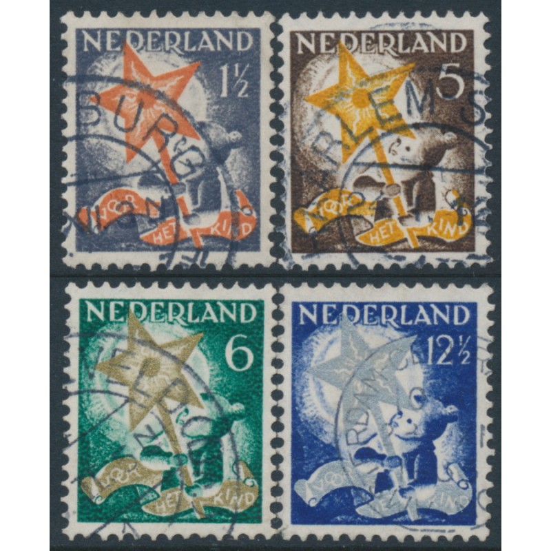 NETHERLANDS / NEDERLAND 1933 Voor het Kind set of 4, used – no thins, tears or bends. NVPH Cat. # 261-264 Michel Cat. # 268-271
