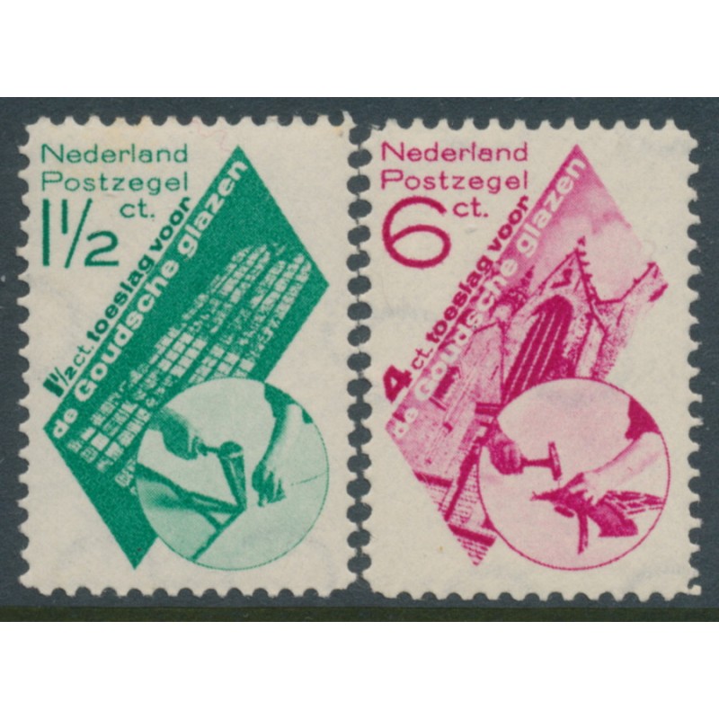 NETHERLANDS / NEDERLAND 1931 Gouda Church Stained Glass Window fund set of 2, mint never hinged – no thins, tears or bends. NVPH Cat. # 238-239 Michel Cat. # 243-244