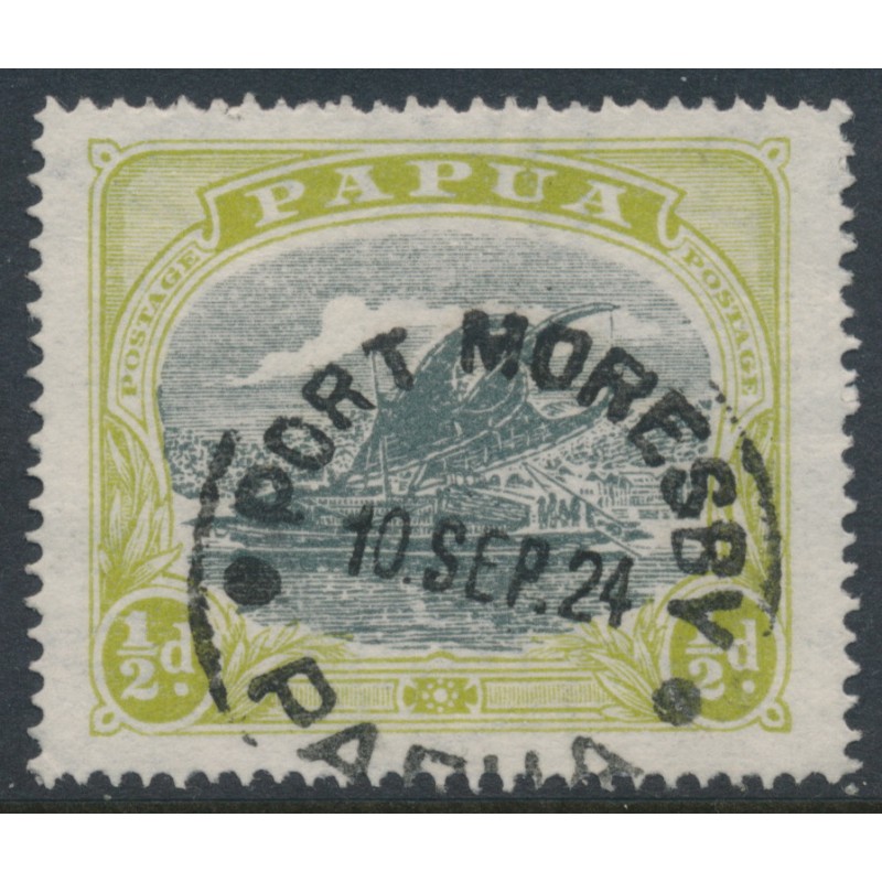 PAPUA / BNG - 1916 ½d myrtle/green Lakatoi, sideways inverted watermark, used – SG # 93w