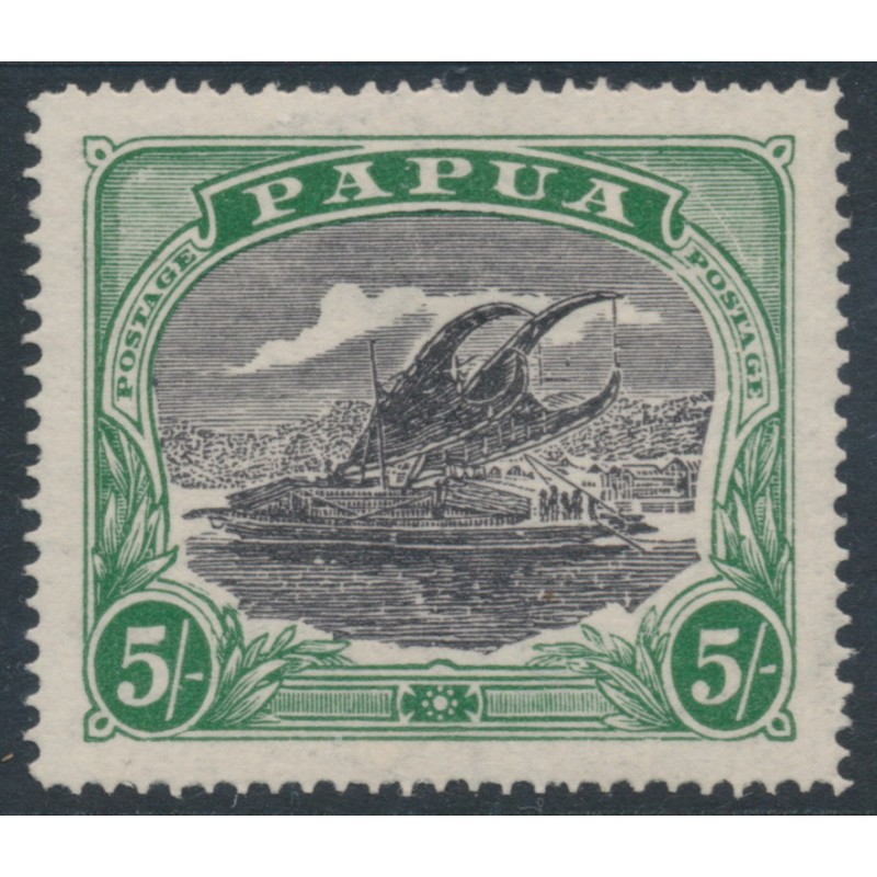 PAPUA / BRITISH NEW GUINEA / B.N.G. 1916 5/- black/deep green Lakatoi, sideways crown A watermark, mint hinged – no thins, tears or bends. SG Cat. # 104
