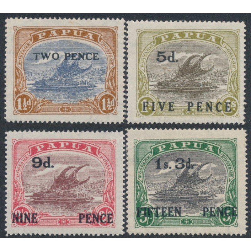 PAPUA / BRITISH NEW GUINEA / B.N.G. 1931 2d to 1/3 Lakatois overprints set of 4, mint hinged – no thins, tears or bends. SG Cat. # 122 + 123 + 125 + 126