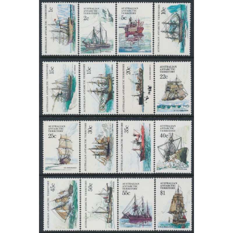 AUSTRALIA / AUSTRALIAN ANTARCTIC TERRITORY / A.A.T. 1979-1981 Ships & Boats complete set of 16, mint never hinged – no thins, tears or bends. SG Cat. # 37-52