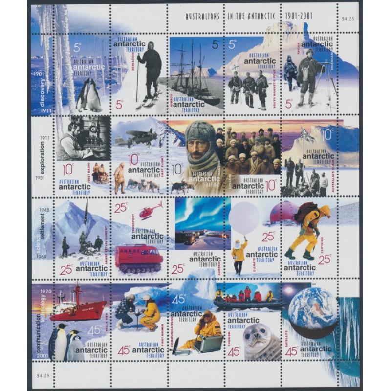 AUSTRALIA / AUSTRALIAN ANTARCTIC TERRITORY / A.A.T. 2001 Centenary of AAT Exploration sheetlet of 20, mint never hinged – no thins, tears or bends. SG Cat. # 132a