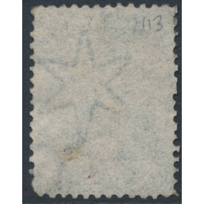 NEW ZEALAND / N.Z. / NZ 1864 2d pale blue Queen Victoria Chalon, perf. 12½:12½, large star watermark, used – no thins, tears or bends. SG Cat. # 113 CP Cat. # A2d