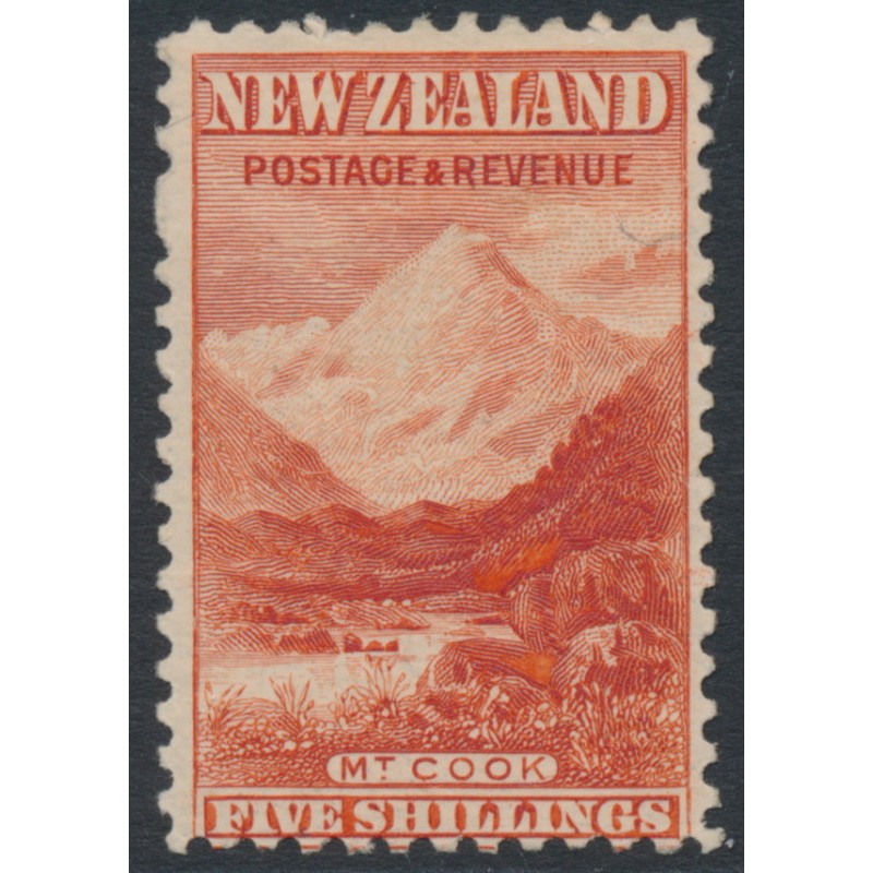 NEW ZEALAND - 1899 5/- vermilion Mt. Cook, no watermark, perf. 11:11, MH – SG # 270
