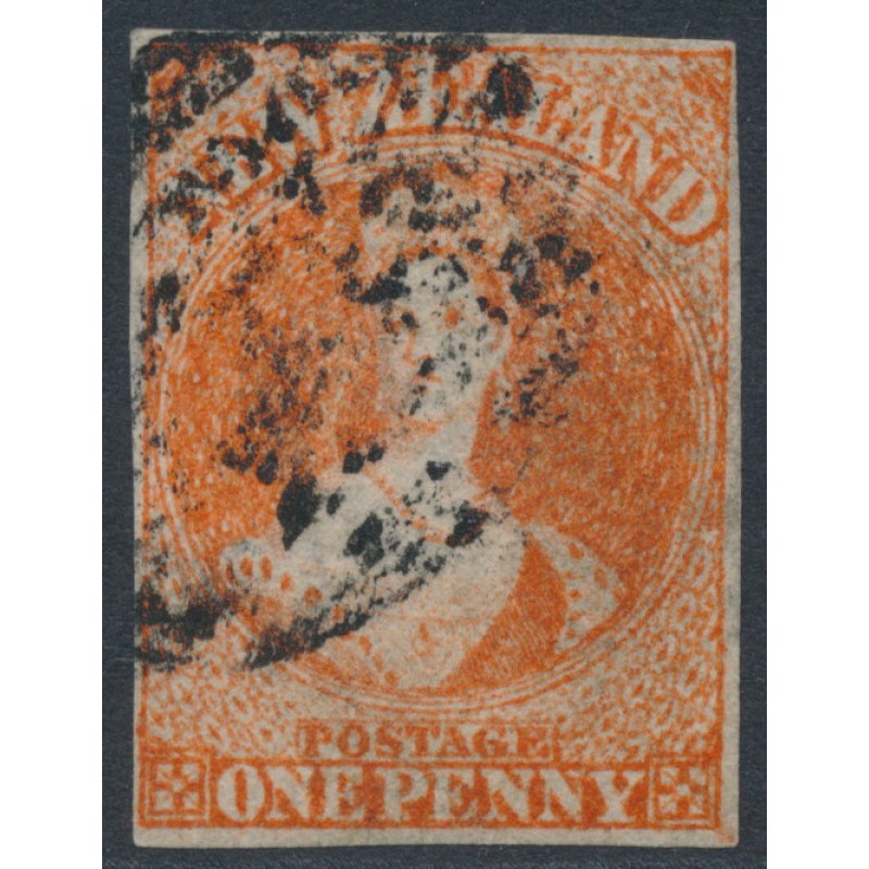 NEW ZEALAND - 1862 1d vermilion QV Chalon, star watermark, imperforate, used – SG # 34