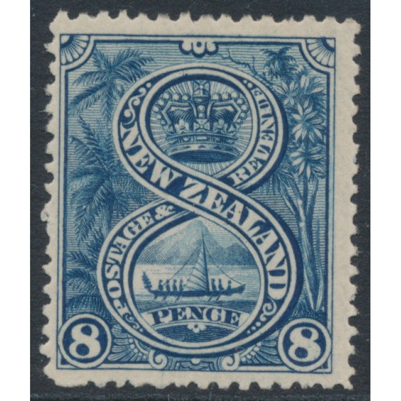 NEW ZEALAND - 1898 8d indigo Maori War Canoe, perf. 15, no watermark, MH – SG # 255