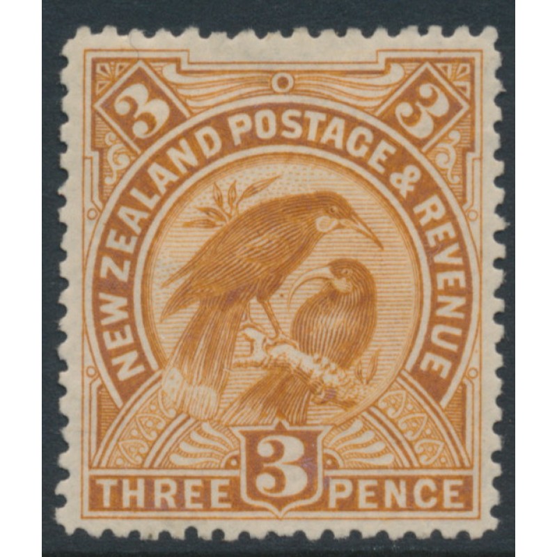 NEW ZEALAND - 1898 3d yellow-brown Huias, perf. 15:15, no watermark, MH – SG # 251