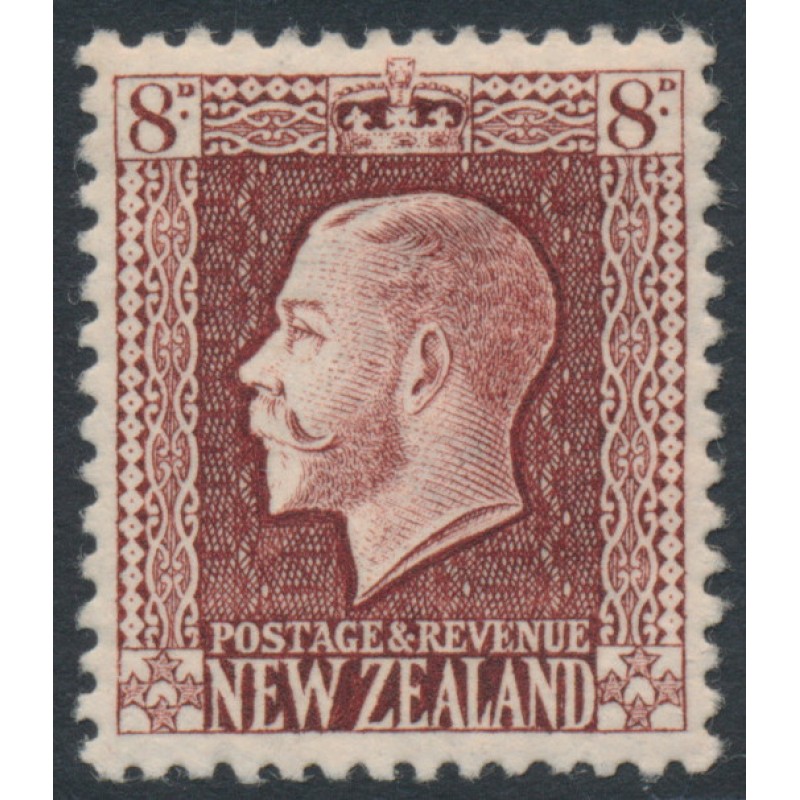 NEW ZEALAND / N.Z. / NZ 1922 8d red-brown King George V, perf. 14:13½, mint hinged – no thins, tears or bends. SG Cat. # 428
