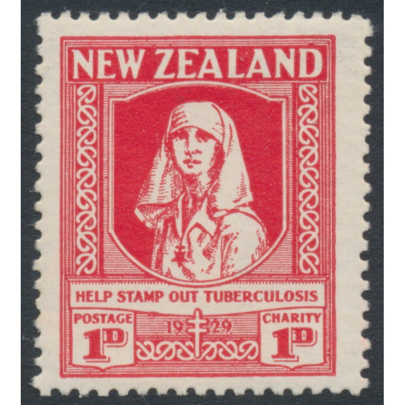 NEW ZEALAND / N.Z. / NZ 1929 1d+1d scarlet Health Stamp, inscribed ‘Help Stamp Out Tuberculosis’, mint never hinged – no thins, tears or bends. SG Cat. # 544 CP Cat. # T1a