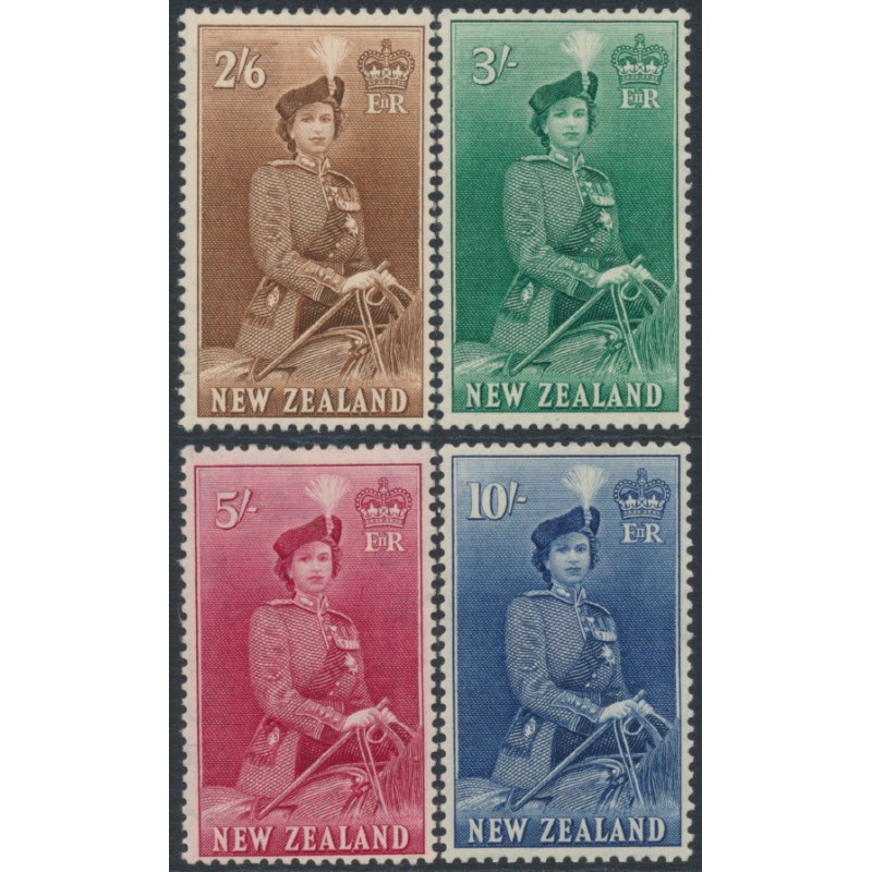 NEW ZEALAND / N.Z. / NZ 1954 2/6 to 10/- QEII on Horse set of 4, mint hinged – no thins, tears or bends. SG Cat. # 733d-736 CP Cat. # N13a-N16a