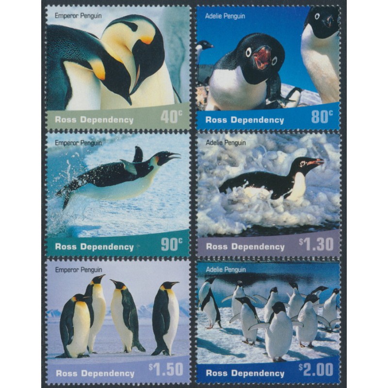 NEW ZEALAND / N.Z. ANTARCTIC / ROSS DEPENDENCY 2001 40c to $2 Penguins set of 6, mint never hinged – no thins, tears or bends. SG Cat. # 72-77