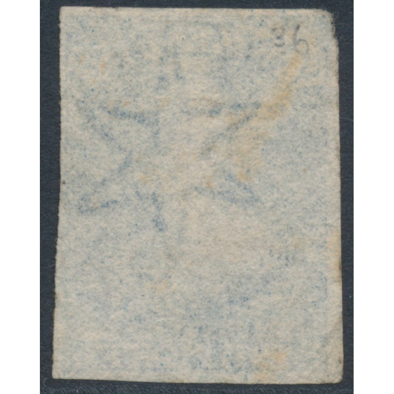 NEW ZEALAND - 1862 2d blue QV Chalon, star watermark, imperforate, used – SG # 36