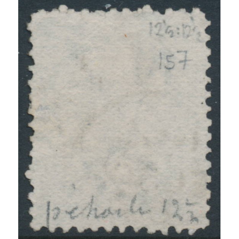 1874 1/- green QV (First Sideface), NZ star watermark, perf. 12½, white paper, used – no thins, tears or bends.