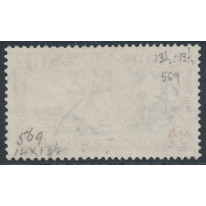 NEW ZEALAND / NZ / N.Z. 1935 3/- chocolate/yellow-brown Mount Egmont, perf. 13½:13½, single NZ star watermark, used – no thins, tears or bends. SG Cat. # 569
