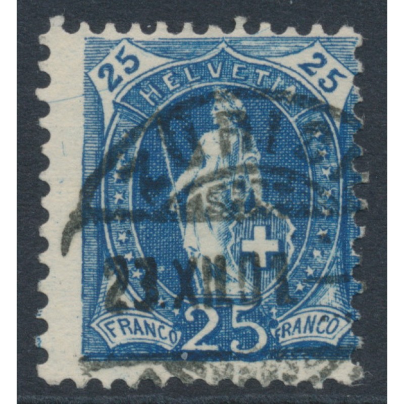 1899 25c blue Standing Helvetia, perf. 11½:11, narrow oval watermark (Kz. II), with the variety ‘long, fine hairline through the left 25’ (lange, feine Haarstriche), used – no thins, tears or bends.