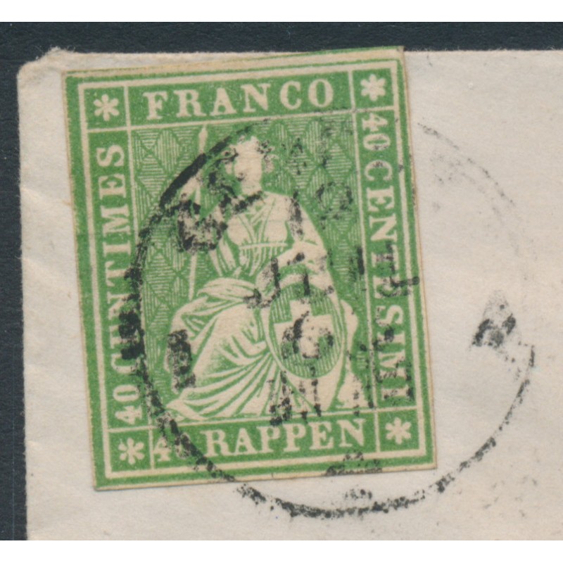 SWITZERLAND - 1860 40Rp green Helvetia, used on cover – Zumstein # 26G