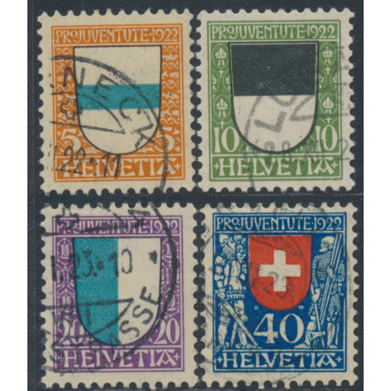 SWITZERLAND / SCHWEIZ / SUISSE / SVIZZERA 1922 Pro Juventute set of 4, used – no thins, tears or bends. Zumstein Cat. # WI21-WI24 Michel Cat. # 175-178 SG Cat. # J20-J23
