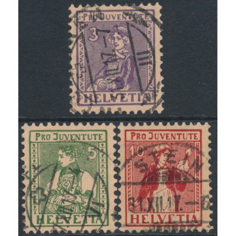 1917 Pro Juventute set of 3, used – no thins, tears or bends.