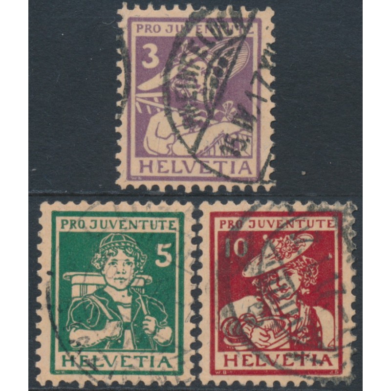 1916 Pro Juventute set of 3, used – no thins, tears or bends.