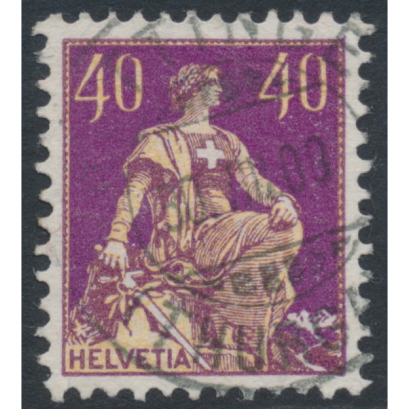 SWITZERLAND - 1908 40c purple/yellow Helvetia, type I, used – Michel # 101