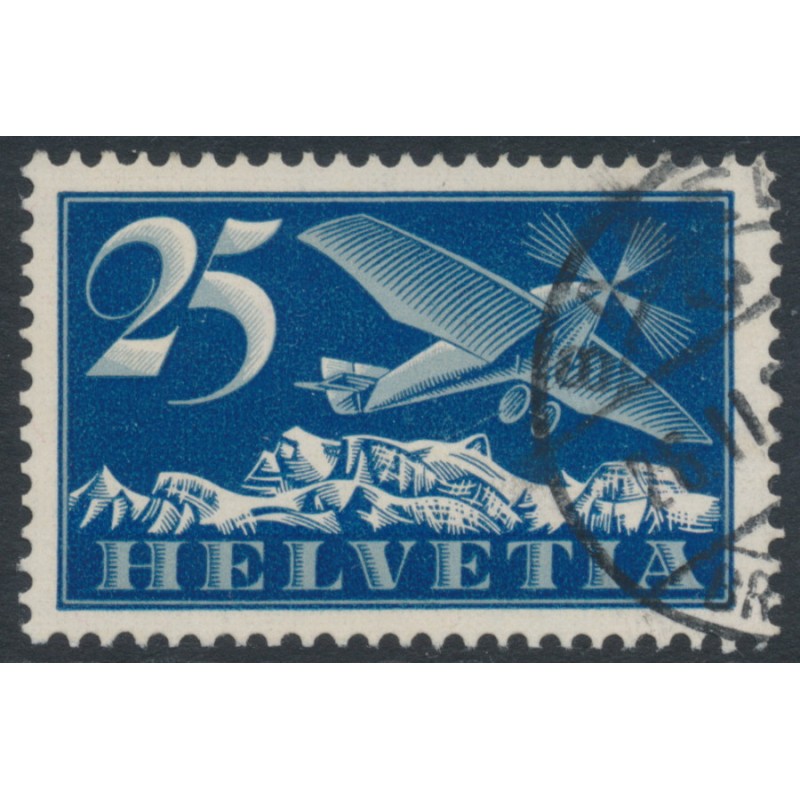 SWITZERLAND - 1934 25c deep ultramarine Airmail, grilled gum, used – Michel # 180z