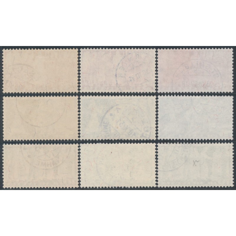 1938-1955 3Fr to 10Fr High Values sets of 3 on the three different papers, used – no thins, tears or bends.