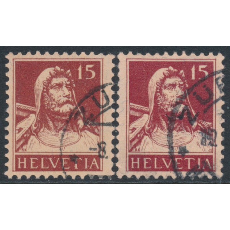 SWITZERLAND - 1927 15c brown William Tell, both papers, used – Michel # 205x+205z